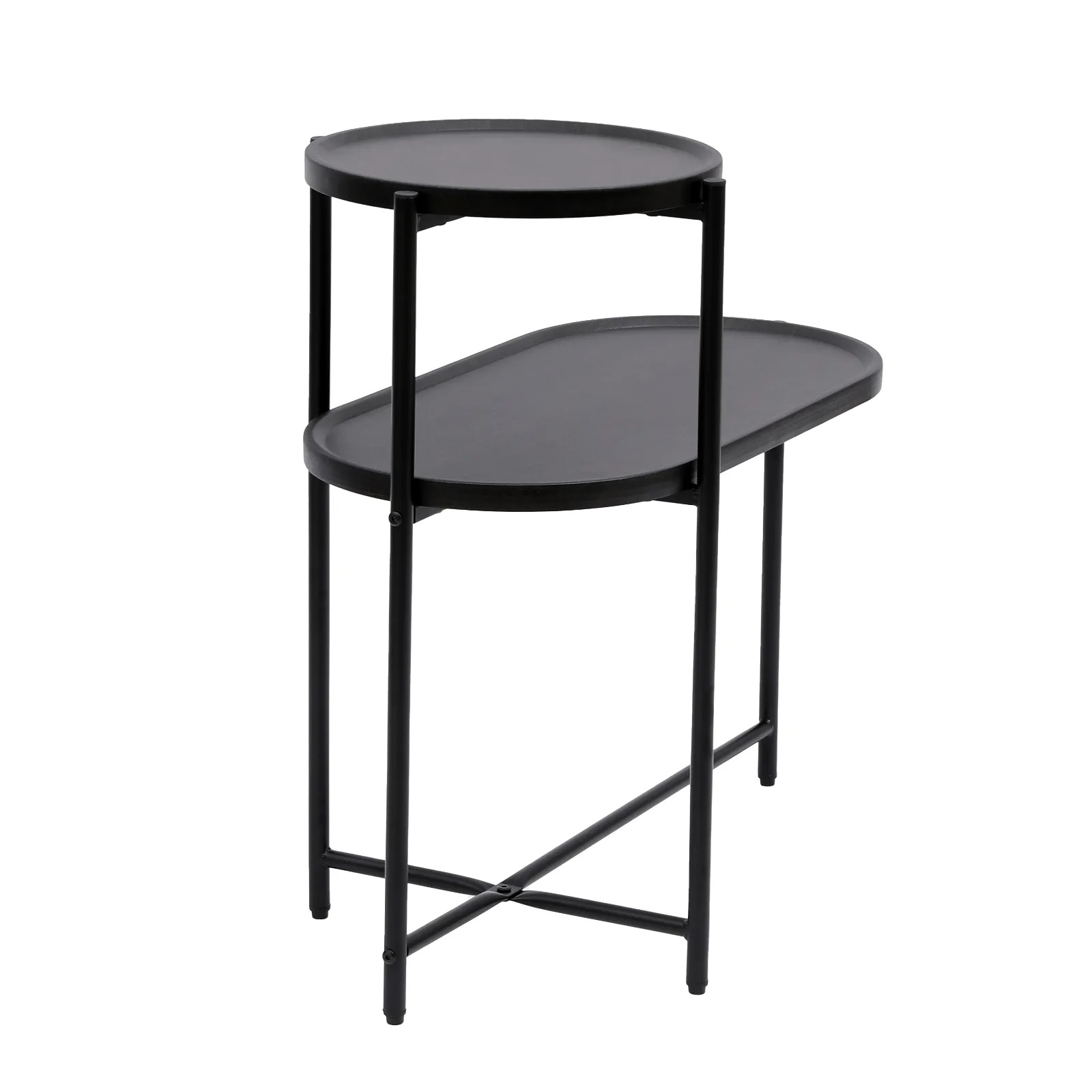 - Ample Storage Space: This black table boasts a two-tier design with a spacious tabletop and bottom shelf for your drinks, snacks, books, or decorative items. Its unique shape and design make it perfect for tiny homes, offices, and even as temporary movie night storage that can be later transformed into a nightstand.