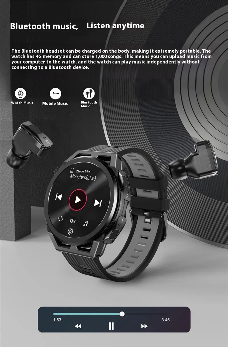 Smart Watch Headset 2-in-1 TWS Two-Way Call 4G Memory Smart Watch