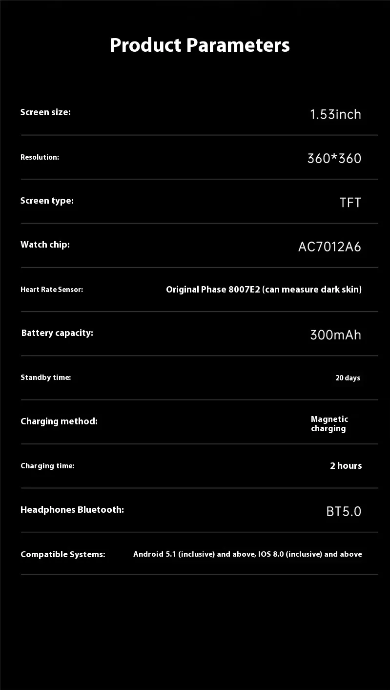 Product information: Color: Black glue, silver glue Packing List: Bracelet manual charging cable packing box Applicable people: Adults Operation mode: touch button Screen Type: TFT screen Battery life: less than 7 days Functions: step counting, heart rate monitoring, blood pressure measurement, Bluetooth call, smart reminder, remote control selfie, sleep monitoring Packing list: Watch * 1pc+headphones * 1 pair Product Image: