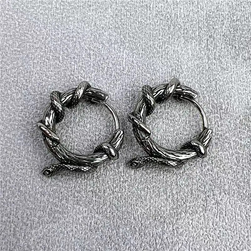 - Large Black Earrings Features tangled snakes