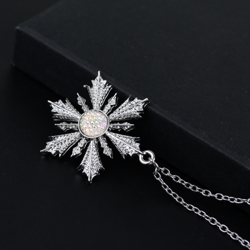 The pendant’s delicate snowflake design captures the natural symmetry and elegance of snowflakes, making it an eye-catching piece that adds a touch of winter charm to any outfit.