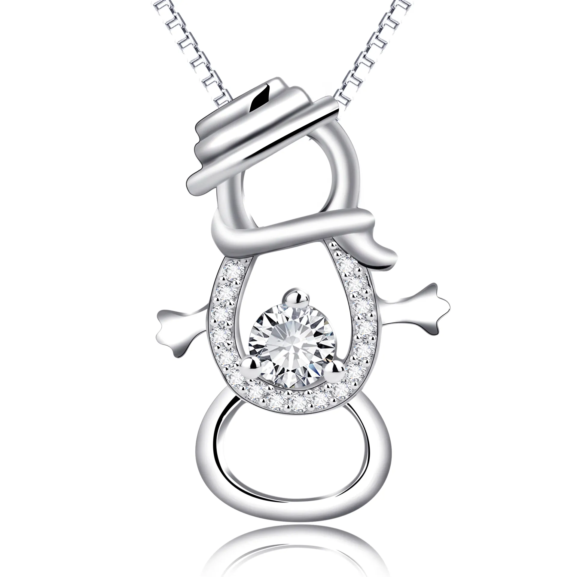 Snowman Pendant 925 Silver Necklace