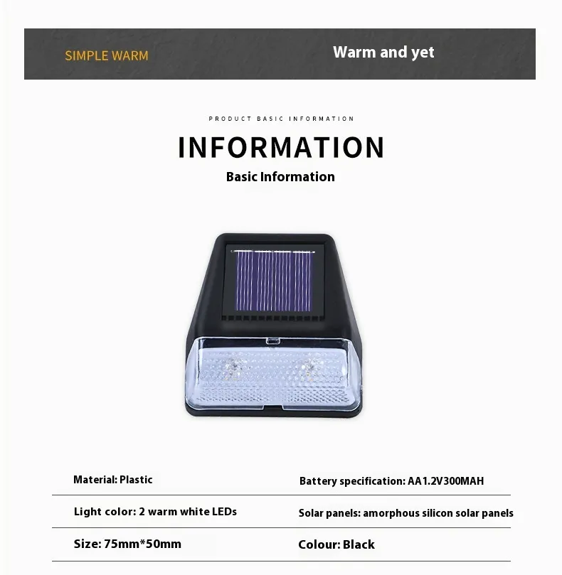 The Solar Outdoor Rainproof Courtyard Garden Decoration Stairs Step Light is an elegant and practical lighting solution designed to enhance the beauty and safety of your outdoor spaces. Whether you're illuminating garden paths, decorating your backyard, or adding ambiance to your stairways and fences, this LED wall lamp provides both aesthetic appeal and functional lighting. With its solar-powered design, this light is energy-efficient, eco-friendly, and cost-effective.