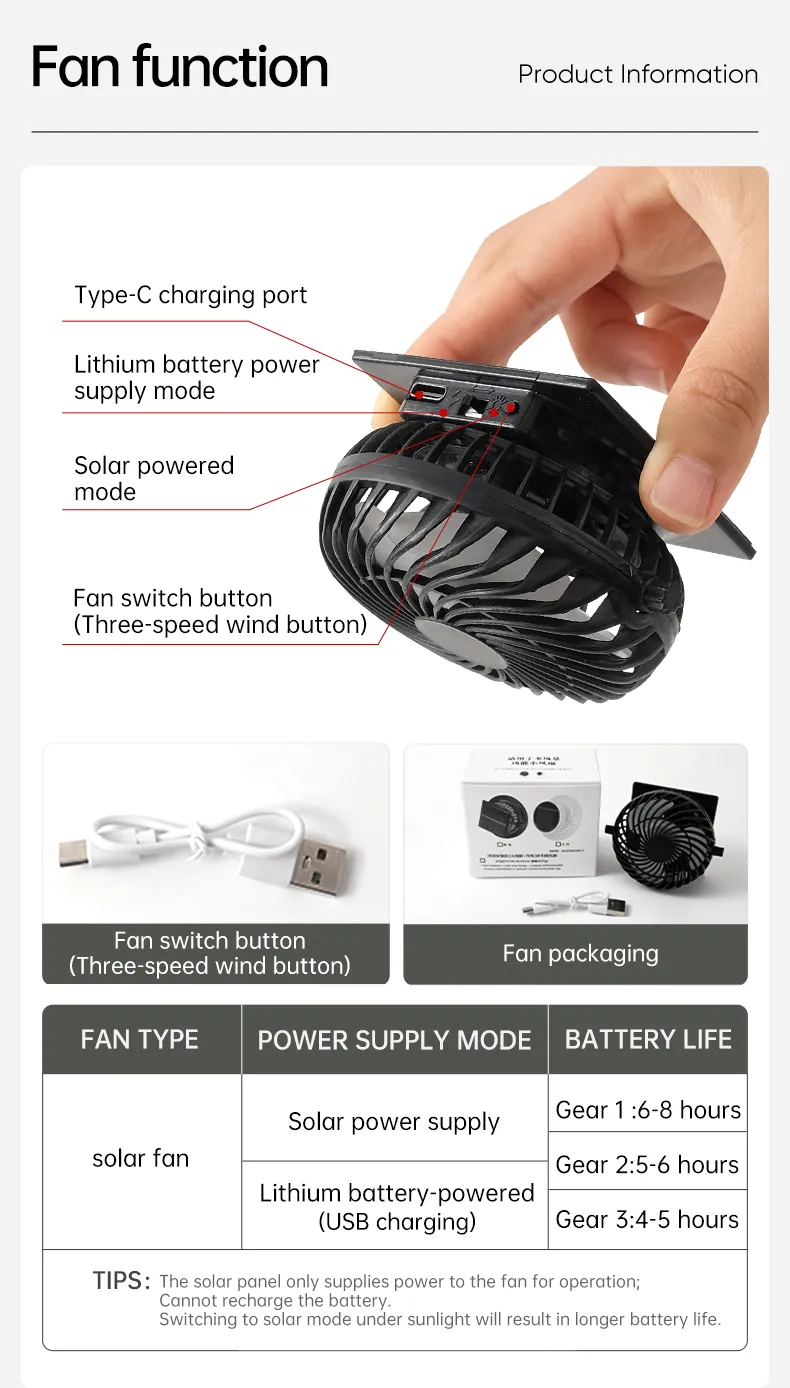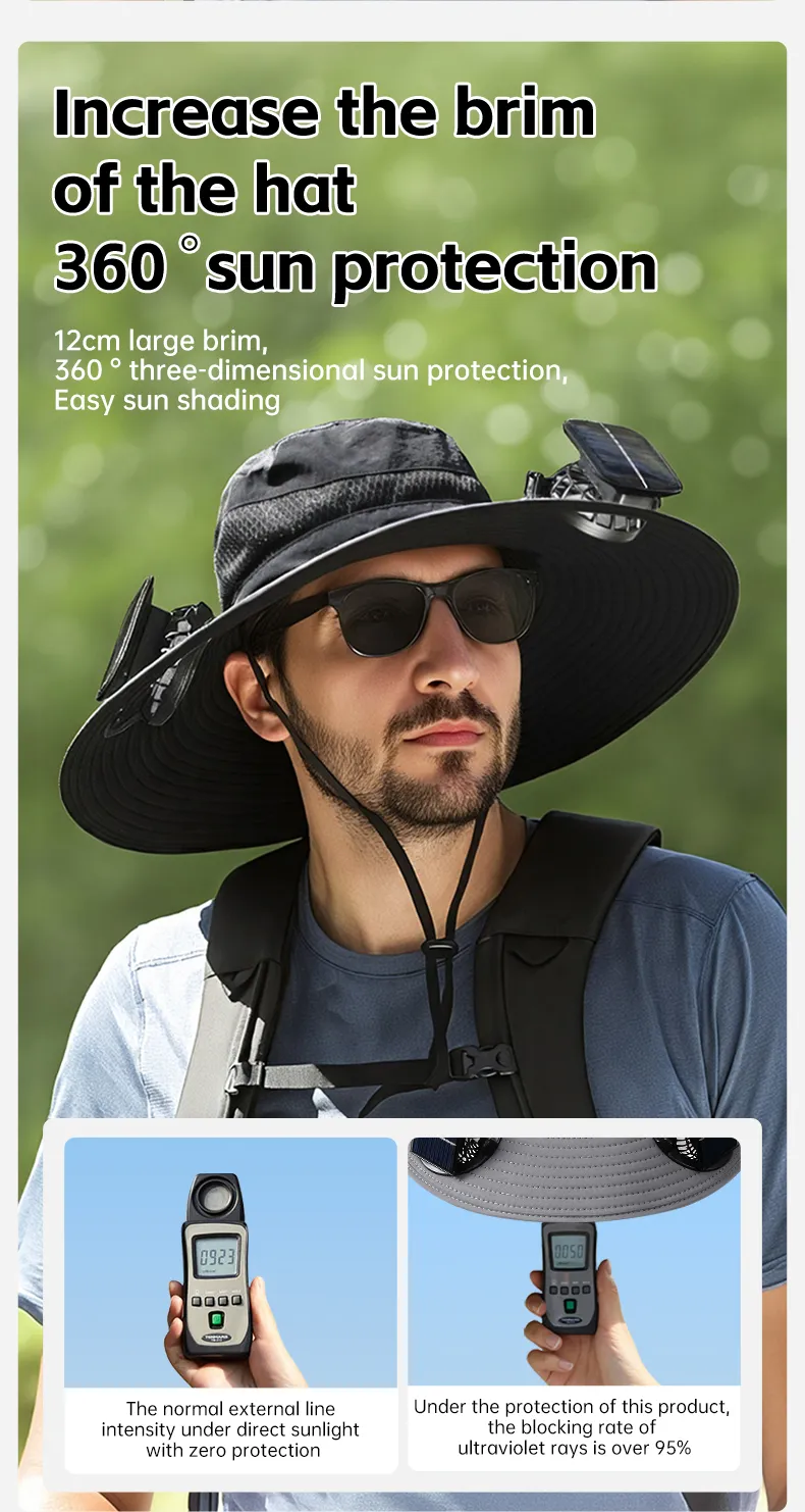 Effective Cooling Technology: The solar-powered fan ensures that you stay cool, even during the hottest outdoor activities.