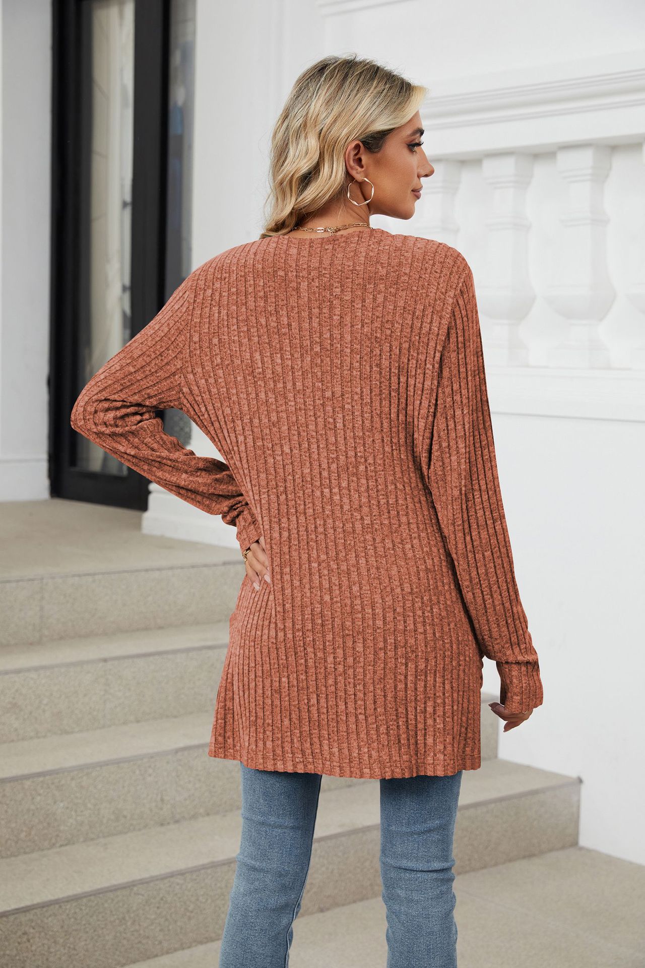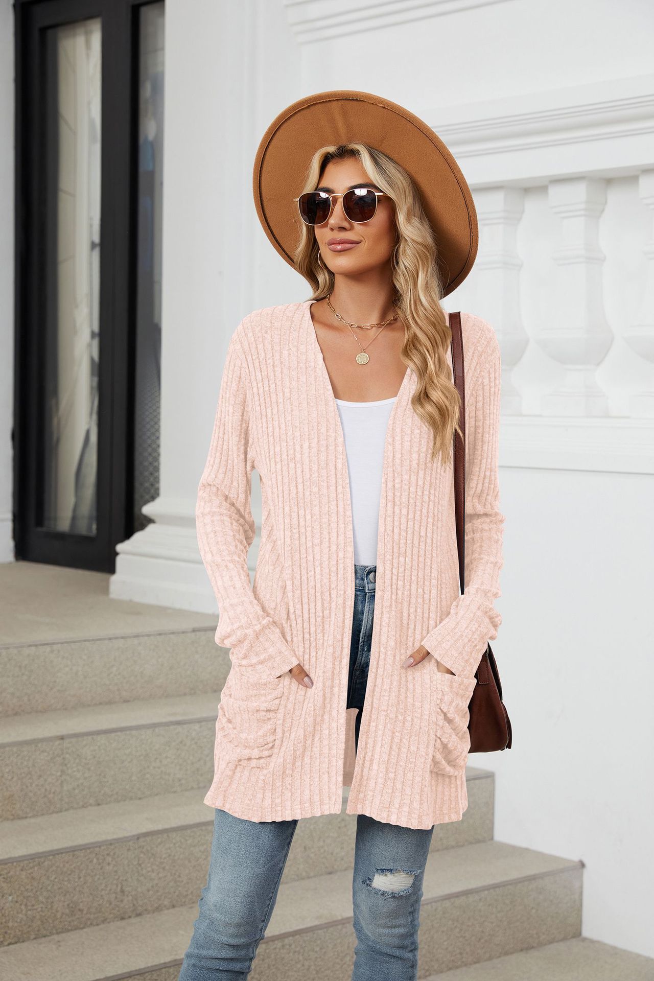 Solid Color Pocket Long Sleeve Bottoming Cardigan Knitwear