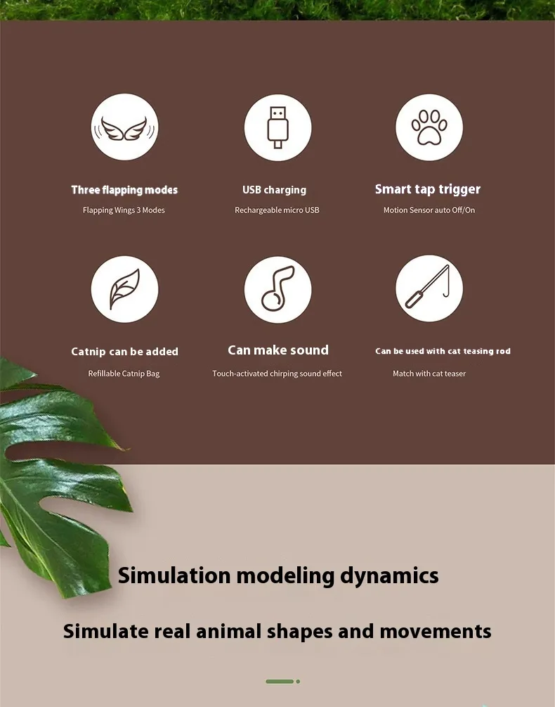 action, moving in unpredictable ways to catch your cat's attention. It can roll, spin, or make small jerking movements, simulating the