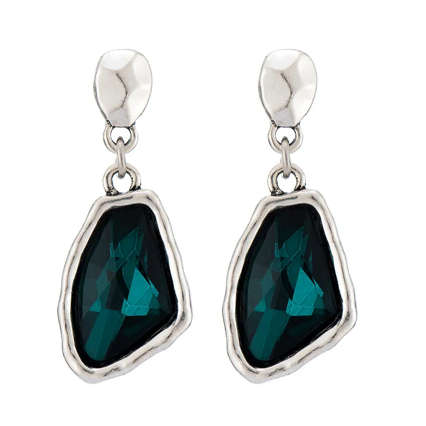 these earrings feature irregular-shaped crystals that catch the light in stunning ways, making them perfect for adding a dramatic