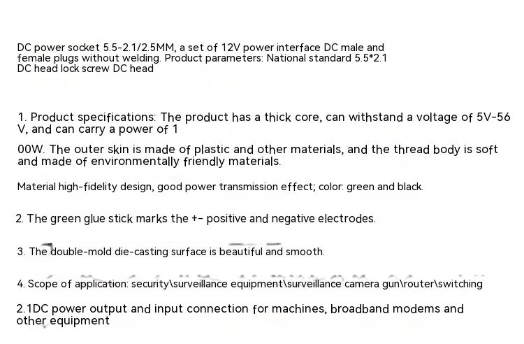 1pc×Solderless DC male connector/1pc×Solderless DC female connector