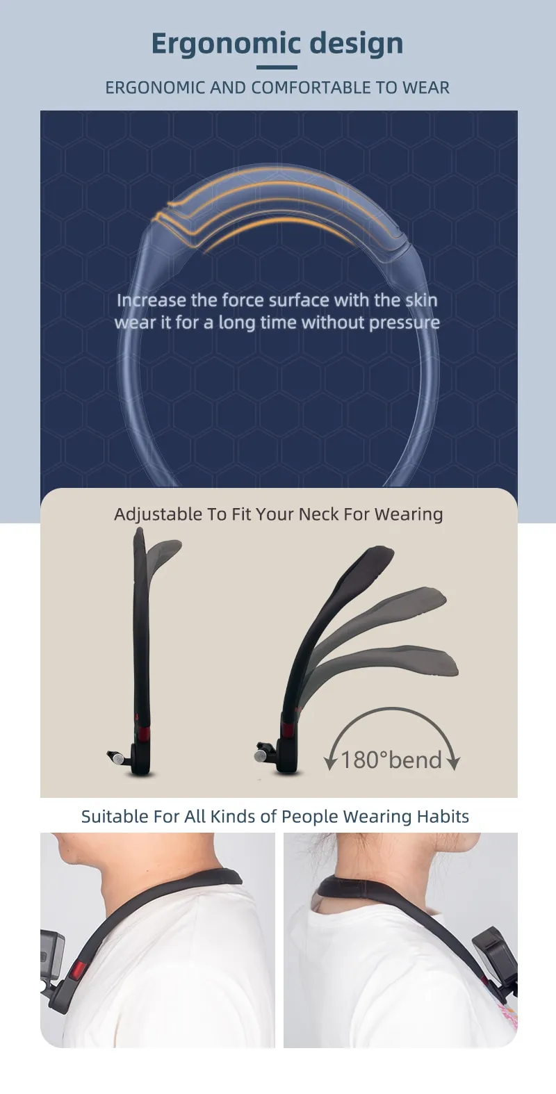 2. Neck closure design, high comfort, long wear without pressure