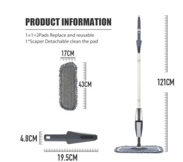 One of the standout features of the spray mop is its refillable bottle, which allows you to use any cleaning solution of your choice. Whether you prefer an all-purpose cleaner, a disinfectant solution, or a floor-specific cleaner, you can fill the bottle with your preferred product to suit your cleaning needs. This customizable option gives you full control over your cleaning routine, allowing you to choose the best product for your floors and preferences.