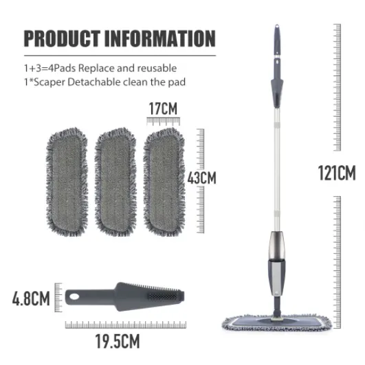 The spray mop is designed for ease of use, making cleaning faster and more efficient. With a lightweight, ergonomic handle, it allows for comfortable use without causing strain on your wrists or back. Simply fill the mop’s refillable bottle with your preferred cleaning solution, and press the trigger on the handle to release a fine mist that wets the floor. The microfiber cleaning pad quickly picks up dirt and dust, ensuring your floors stay spotless with minimal effort.