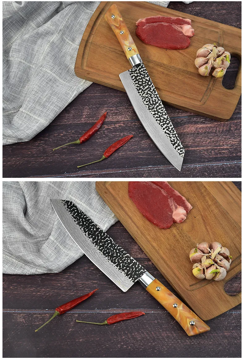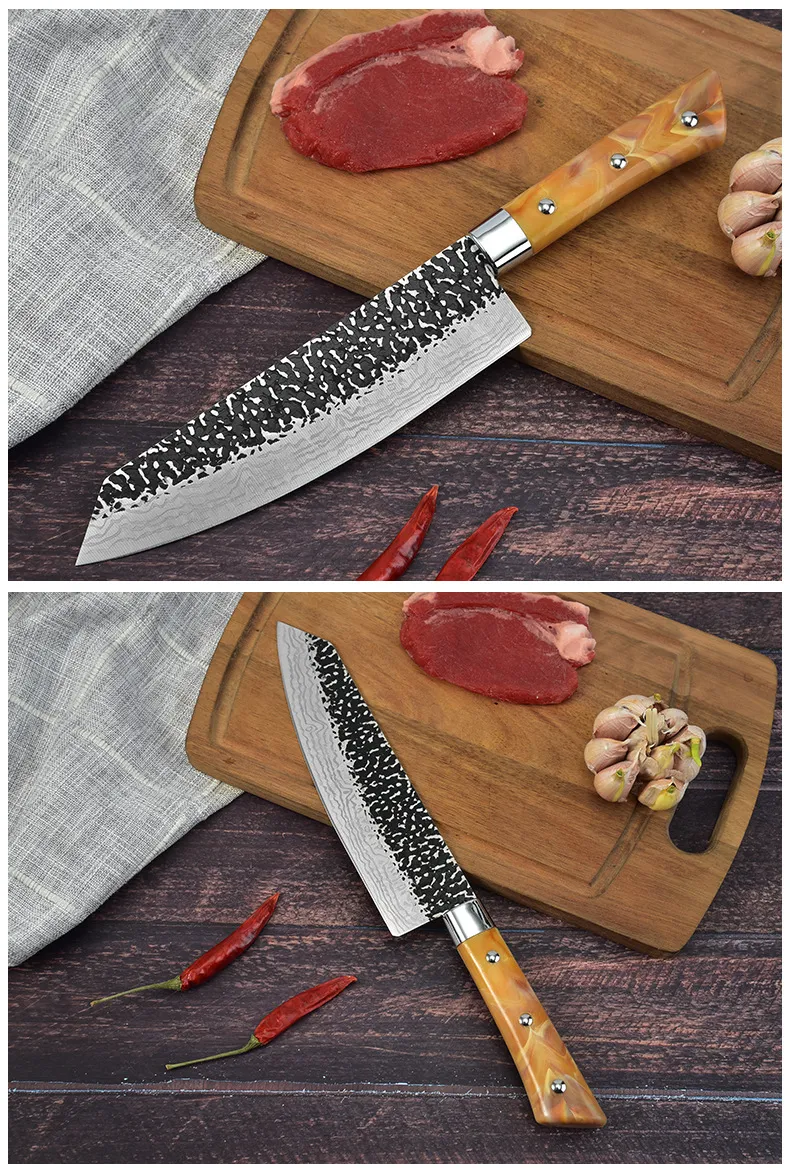 Stainless Chef's Knife Marbled Handle Diagonal Kitchen Knife