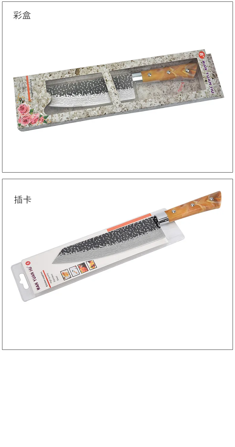 Stainless Chef's Knife Marbled Handle Diagonal Kitchen Knife