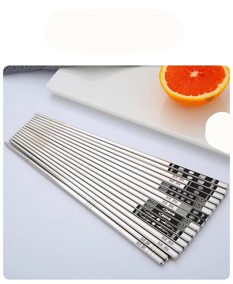 Made from premium stainless steel, these chopsticks are built to last. They are resistant to rust, staining, and corrosion, which means they will maintain their sleek appearance for years to come. Unlike wooden chopsticks, which can crack, splinter, or degrade over time, stainless steel chopsticks offer unmatched durability, ensuring a long lifespan and saving you money in the long run.