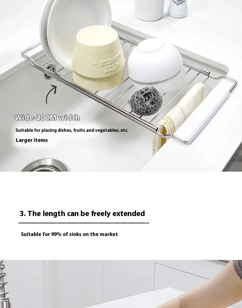custom fit for your kitchen space. Simply extend or retract the rack as needed to accommodate your sink.