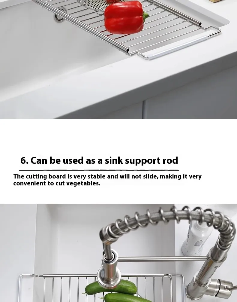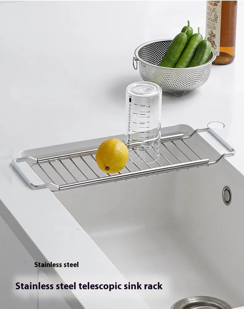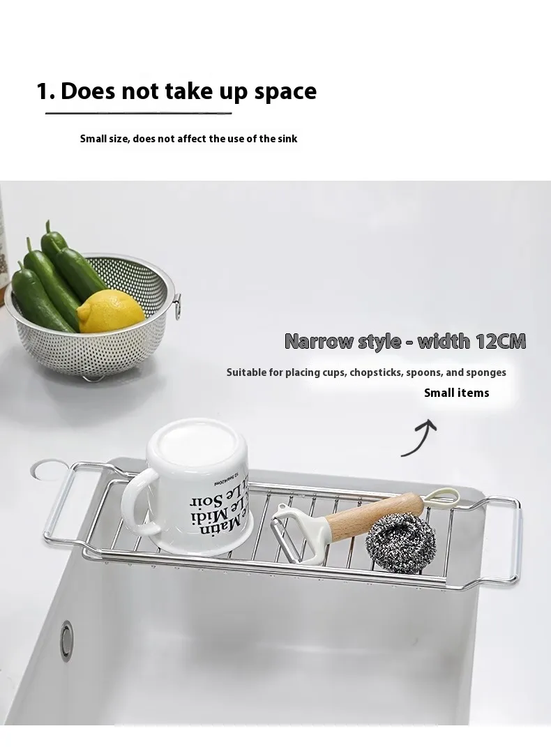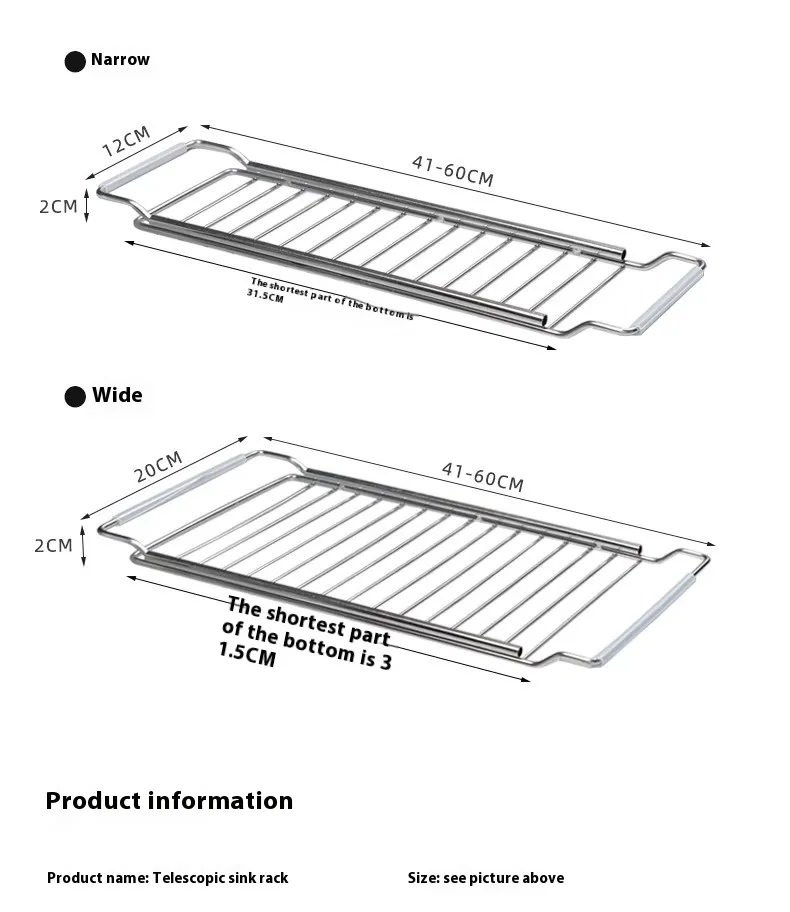 The Stainless Steel Kitchen Telescopic Sink Storage Rack Draining is an innovative solution designed to maximize space and enhance the functionality of your kitchen sink area. Featuring a telescopic design, this rack is adjustable to fit various sink sizes and can be extended or collapsed for convenient storage. Crafted from durable stainless steel, it provides a reliable, rust-resistant, and stylish way to store dishware, utensils, and other kitchen items while allowing water to drain effectively.