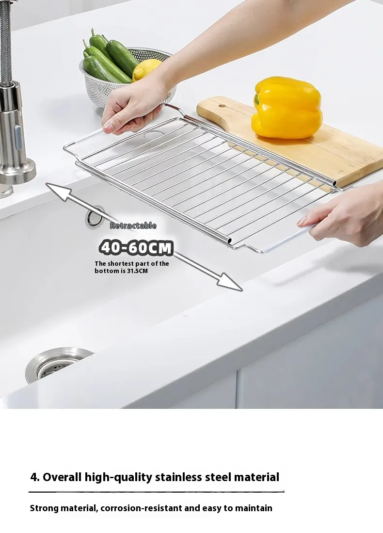 Stainless Steel Kitchen Telescopic Sink Storage Rack Draining