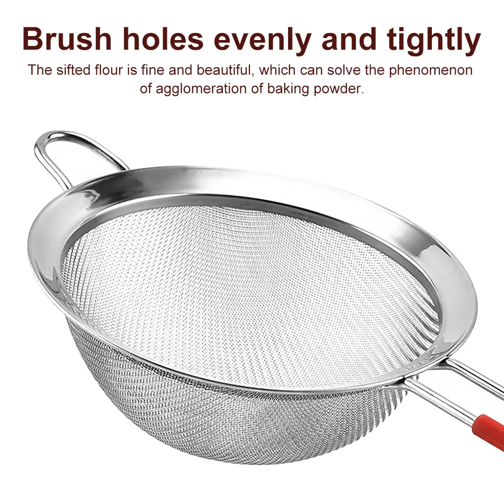 A stainless steel mesh strainer is an indispensable tool for every kitchen, offering precision, durability, and versatility for a variety of tasks. Whether you're sifting dry ingredients, straining soups and broths, or rinsing produce, this handy tool ensures your cooking processes run smoothly and efficiently. With its easy-to-clean, heat-resistant design, a stainless steel mesh strainer is built to last and can handle all your straining and filtering needs. Invest in a high-quality mesh strainer today and elevate your kitchen's functionality and efficiency.