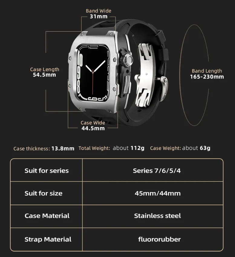 In conclusion, the Stainless Steel Protective Case Strap provides the perfect mix of durability, elegance, and protection. The premium stainless steel material ensures a long-lasting and scratch-resistant strap, while the adjustable fit and quick-release mechanism offer comfort and convenience. Whether you're looking to protect your watch from daily wear and tear or simply add a sophisticated touch to your timepiece, this strap provides reliable protection and elegance for every occasion.