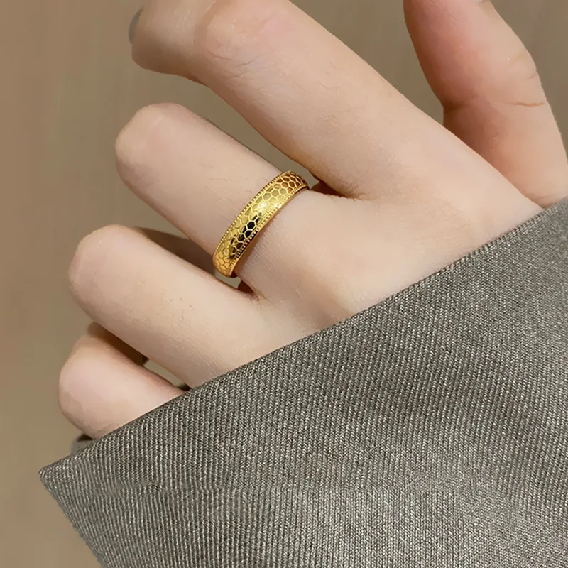 Unique Honeycomb Design: The 4mm honeycomb shape gives the ring a distinctive, modern look