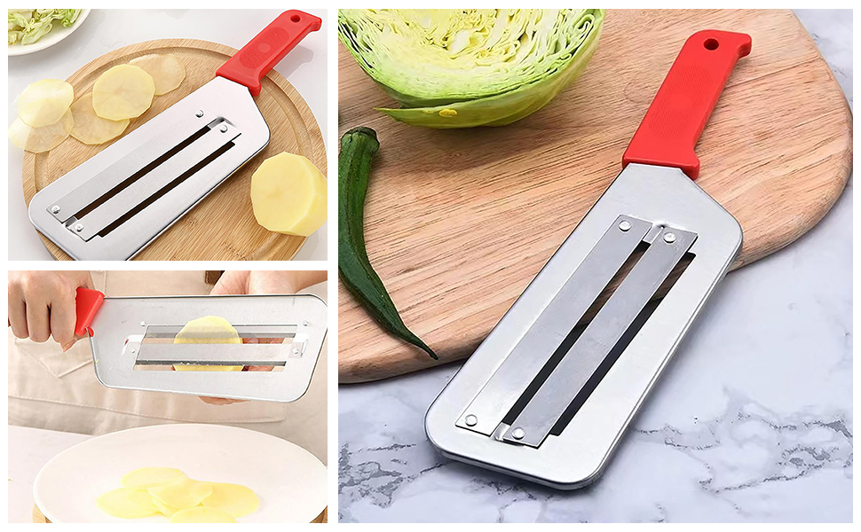 Except shredding cabbage perfectly for coleslaw. It also can be used to slice a variety of vegetables and fruit including lettuce, cucumber, carrot, potatoes, chili, onion, apple, pears etc.