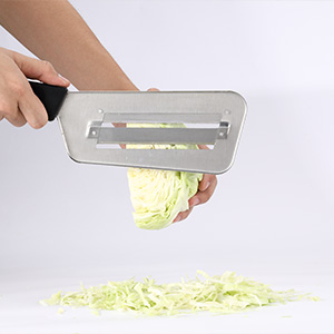 With dual stainless steel blades, this product easily doubled the cutting speed and reduced the effort considerably. You can slice the cabbage into the uniform thickness. Shreds of 1 kilogram of cabbage takes less than 5 minutes even if you are inexperienced with it.