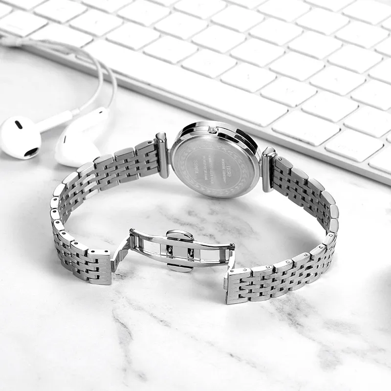 Each watch is meticulously crafted from premium stainless steel, known for its durability and polished finish. The material ensures resistance to wear and tarnish, providing a long-lasting shine that retains its elegance over time. The sturdy construction also offers exceptional reliability for everyday wear.