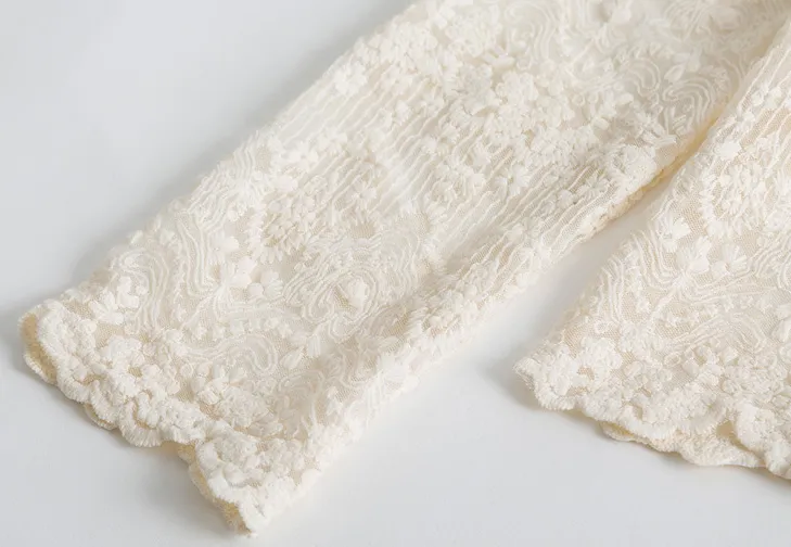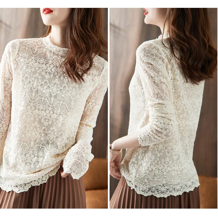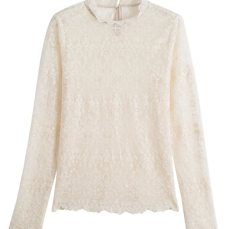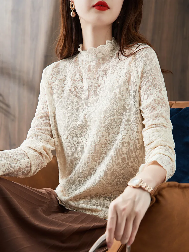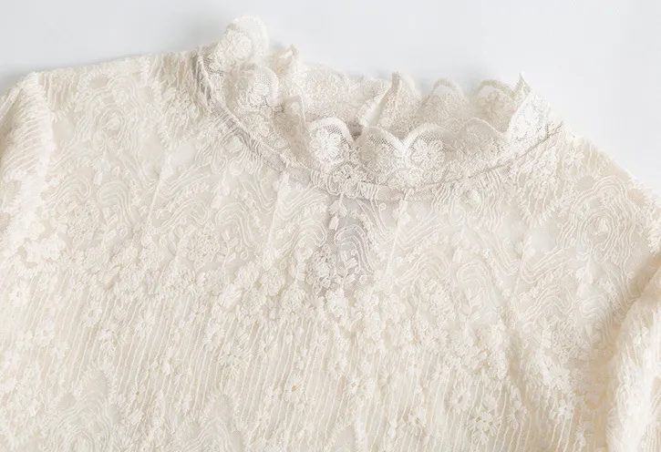 Standing Collar Style With Long Sleeve Lace Shirt Woman