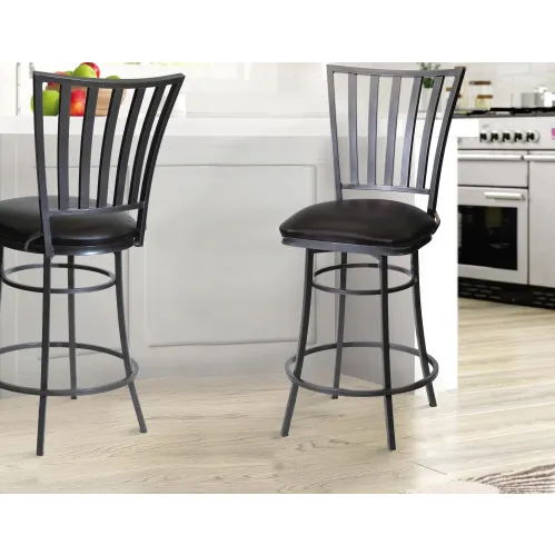 The Stellan Swivel Counter Stool in Black combines modern design with durability, making it an excellent addition to any kitchen or bar area. Crafted by Steve Silver Company, this stool features a sleek gunmetal finish with a comfortable black faux leather seat. Its 360-degree swivel mechanism ensures easy movement, while the sturdy construction provides long-lasting support. With a 24-inch seat height, it's ideal for 36-inch high counters and bars.The Home Depot+6Walmart.com+6Coleman Furniture+6Furniture Cart+1Steve Silver Company+1