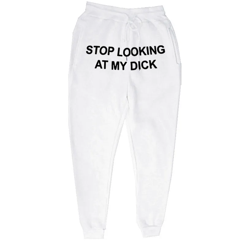 stop looking at my dick pants are a popular fashion choice, blending practicality with trendy style. Their modern, sporty look is a staple in streetwear and athleisure, making them a must-have for fashion-conscious individuals. With various styles and colors available, you can easily incorporate joggers into your wardrobe and keep your look fresh and current.