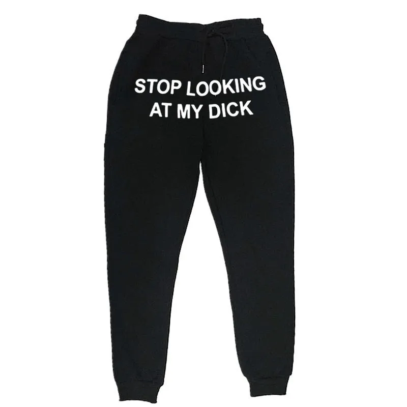 stop looking at my dick pants are made to withstand the rigors of everyday use. Whether you're wearing them for exercise, outdoor adventures, or casual outings, these pants are built to last. The durable materials ensure that they can handle rough wear and frequent washing, making them a smart investment for anyone looking for a long-lasting, stylish piece.