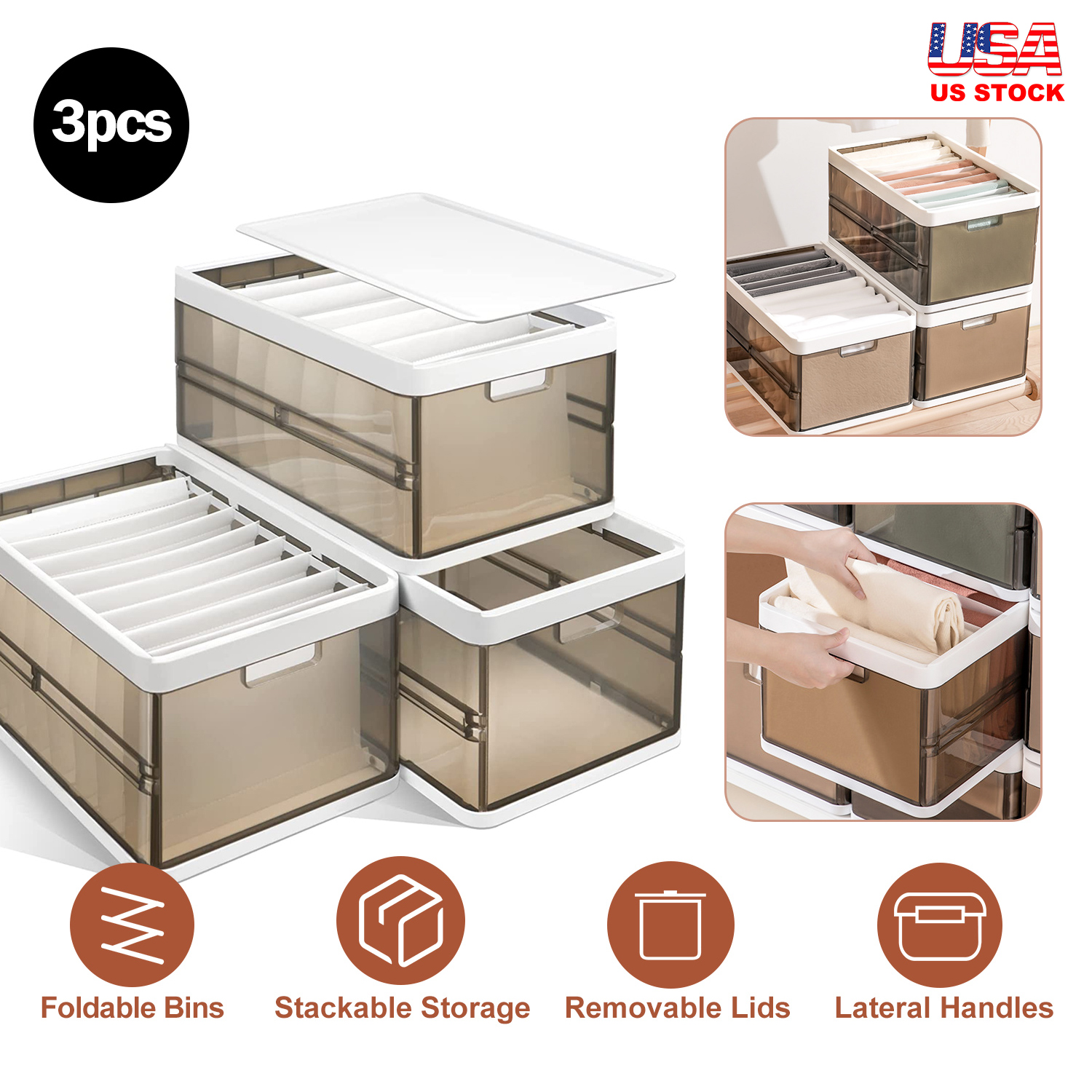*Foldable & Stackable Bins*:3 Pack of storage bins can be folded to save space when not in use. And you can freely stack into multi-layer closet organizer according to your personal storage demands. Effectively help you maximize limited space.