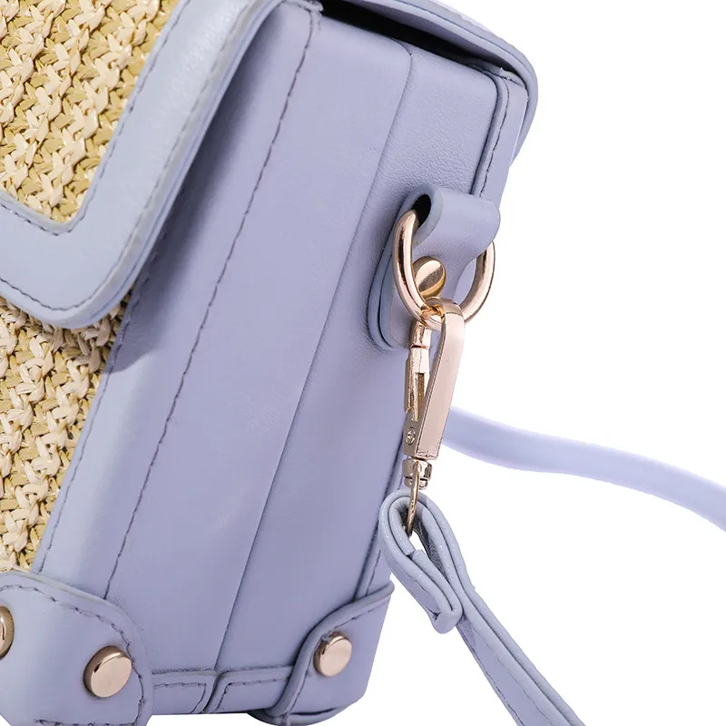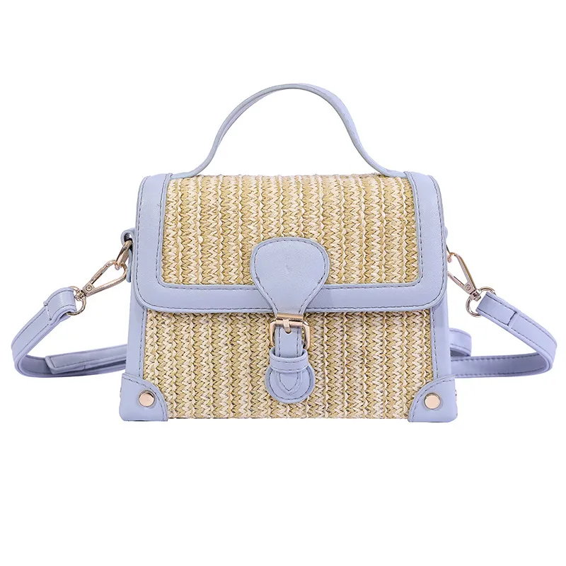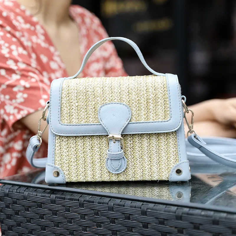 Straw Box Single-Shoulder Diagonal Women'S Bag Hit Color Lock Buckle Casual Fashion Clamshell Custom Bag