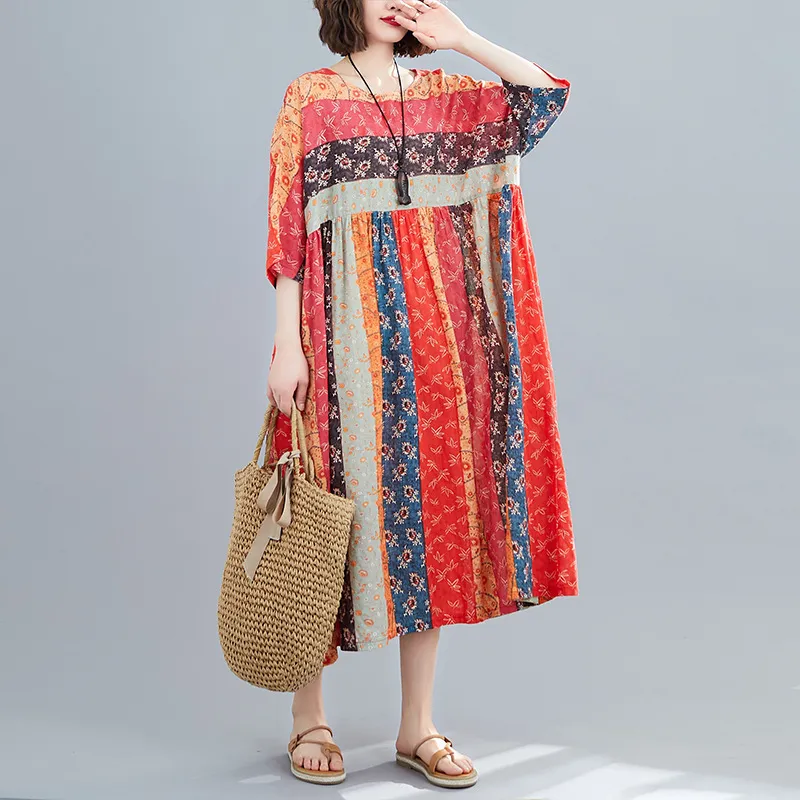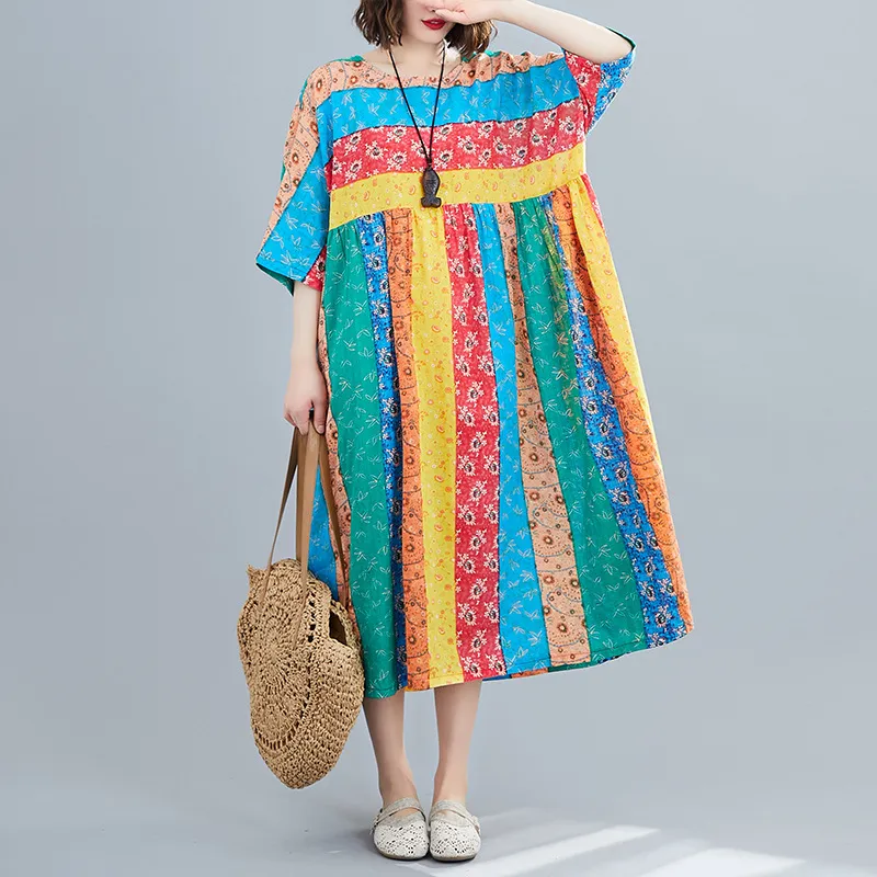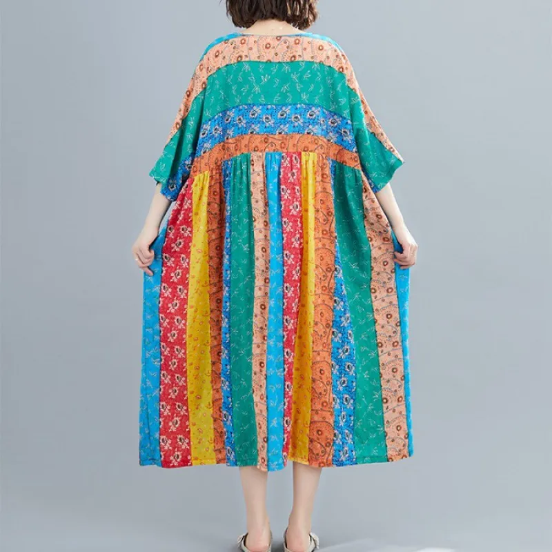 Summer Print Long Skirt Loose A-line Skirt Fat Woman Dress