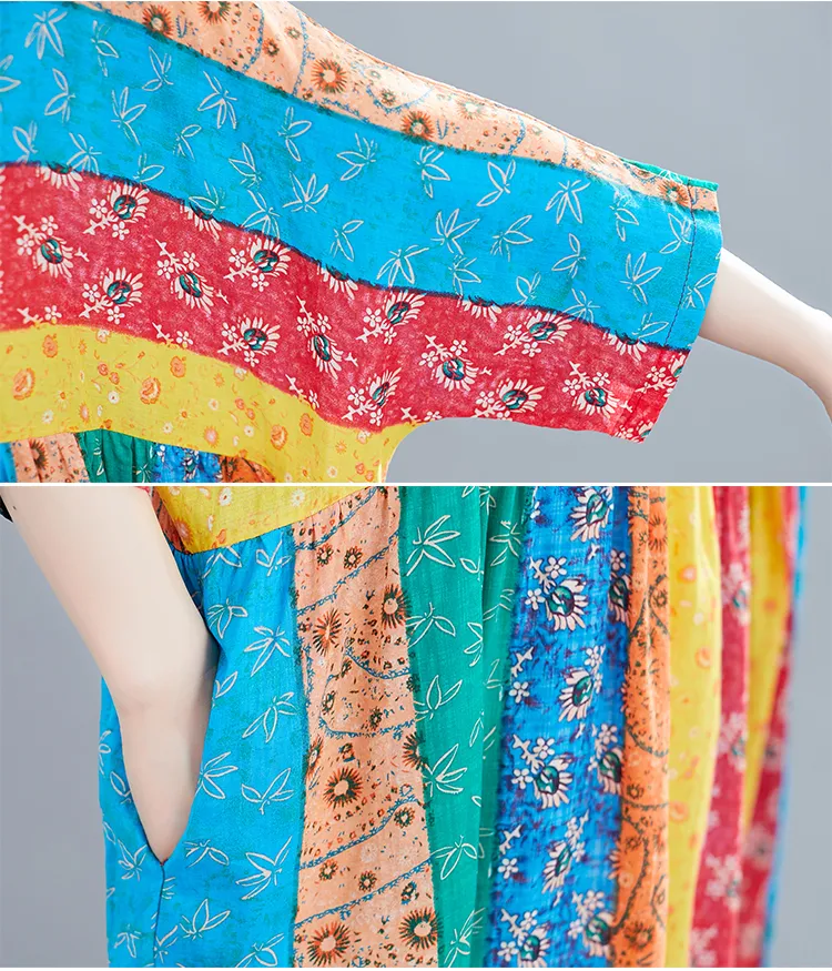 Summer Print Long Skirt Loose A-line Skirt Fat Woman Dress