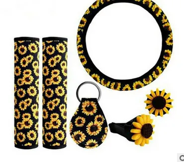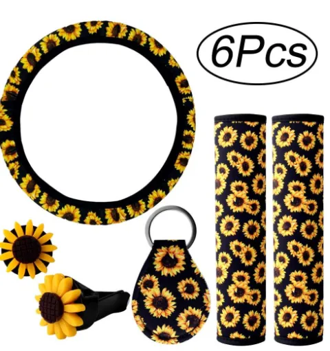Quantity-A total of 6 pieces of sunflower car accessory kits, 1 piece of sunflower steering wheel cover, 1 piece of sunflower key ring, 2