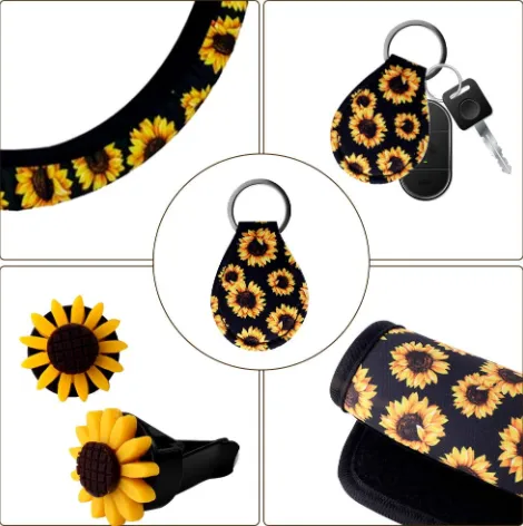 The Sunflower Steering Wheel Cover Anti-Slip Foreign Trade Keychain set makes for a thoughtful gift for friends, family, or