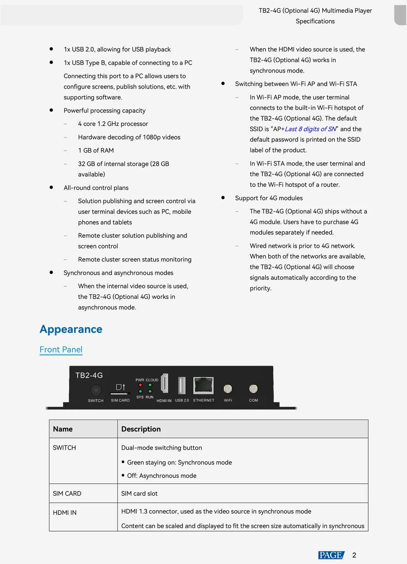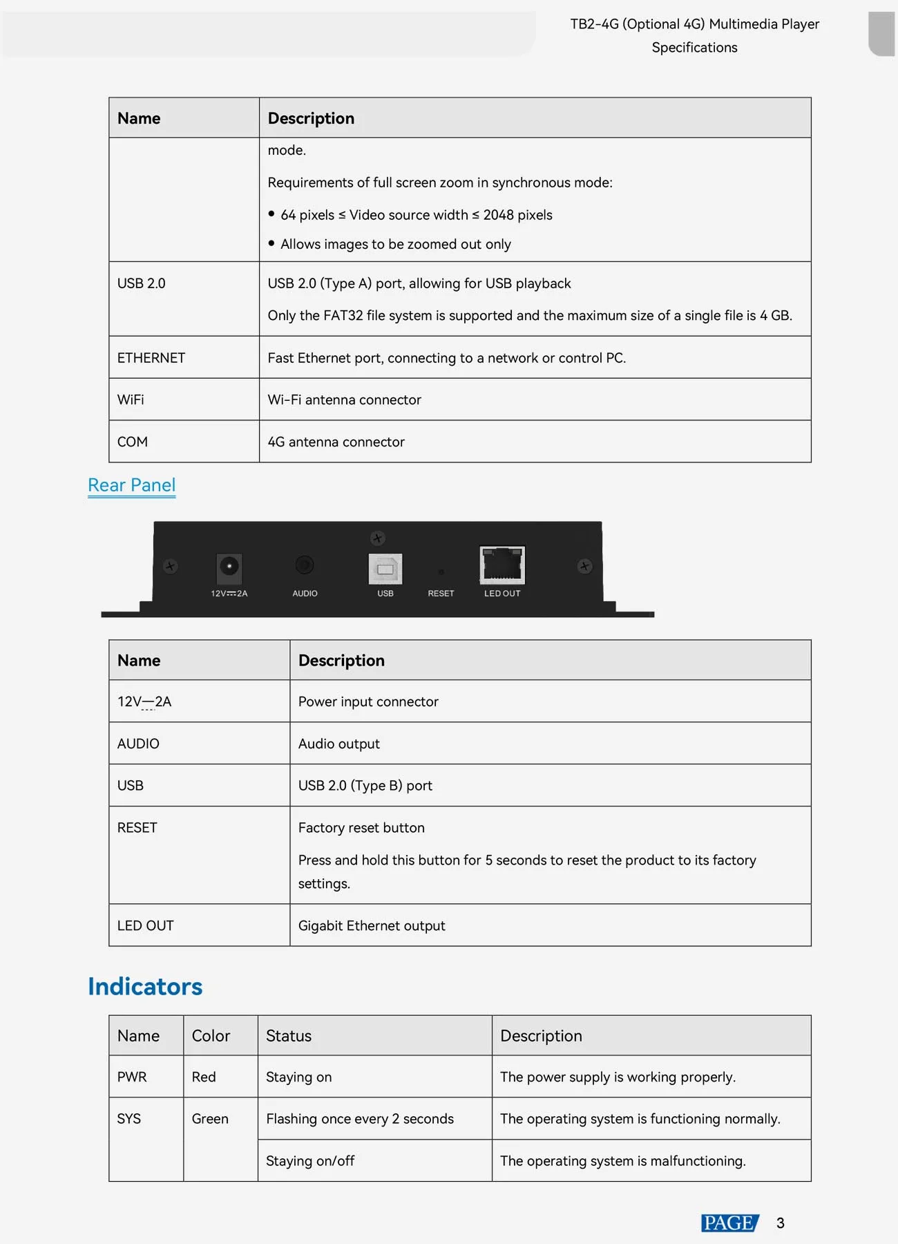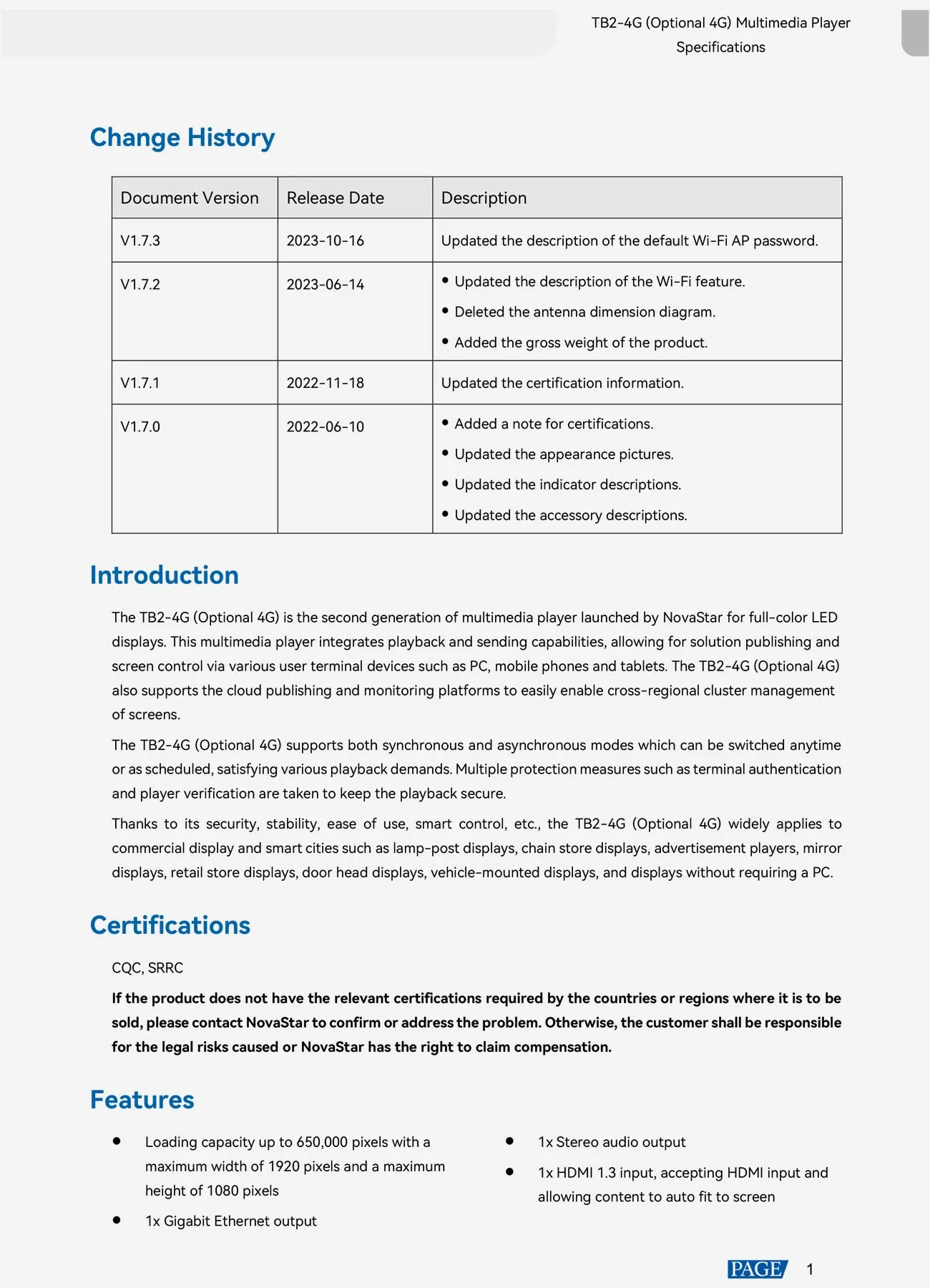 Support Language: Other - Novastar TB2 Multimedia Playback Box USB Port WiFi Controller HUB75 Full Color Module LED Display Screen Video Processor