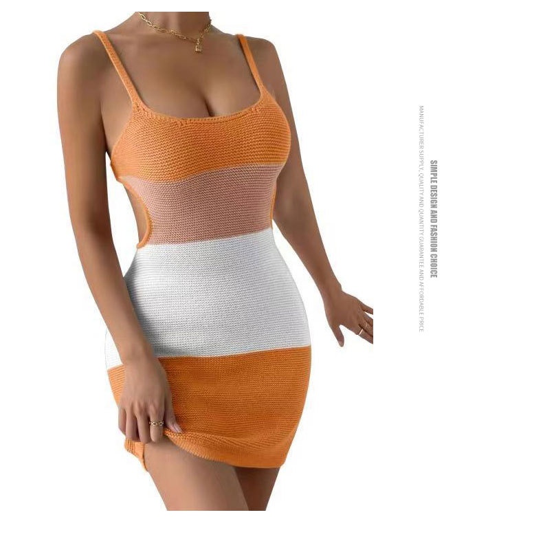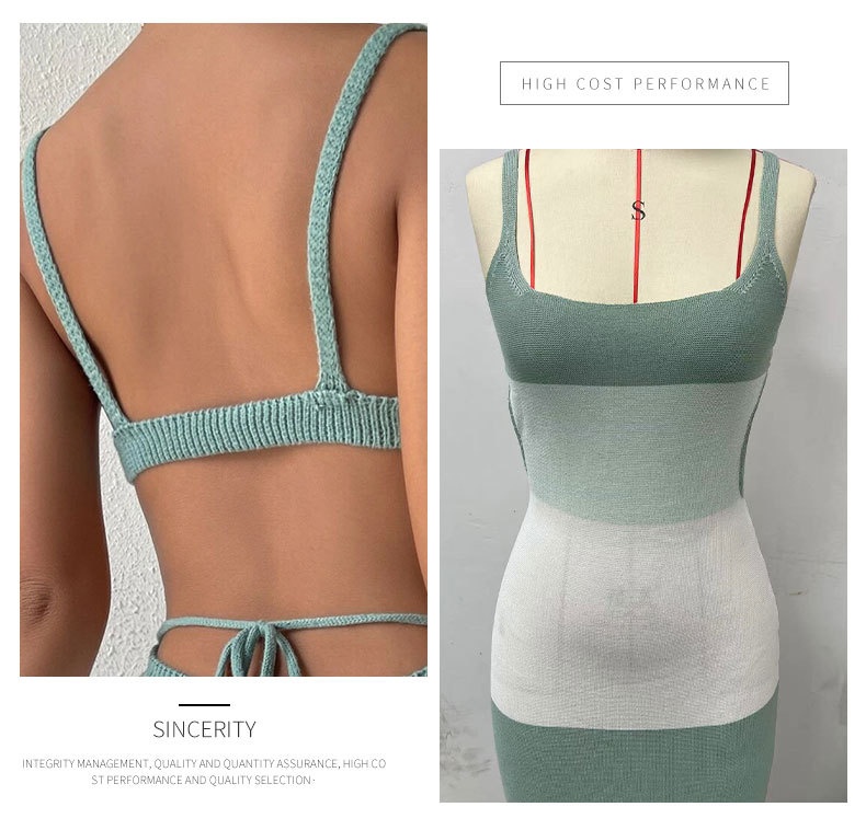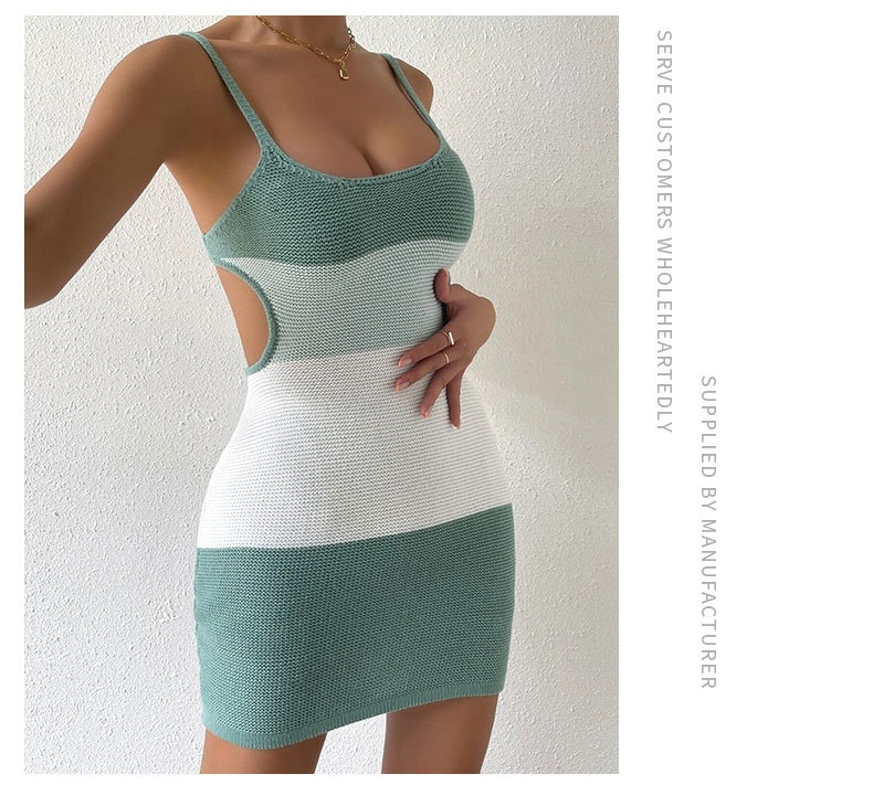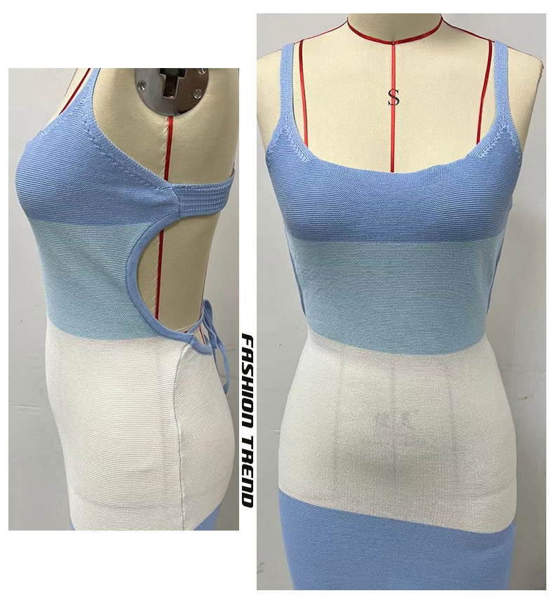 Suspender Stripes Color Matching Backless Lace Up Knitted Wool Dress