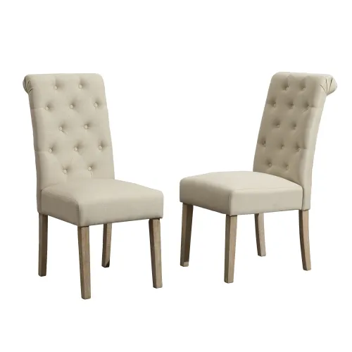 Product Name:Habit Solid Wood Tufted Parsons Dining Chair, Set of 2, Tan