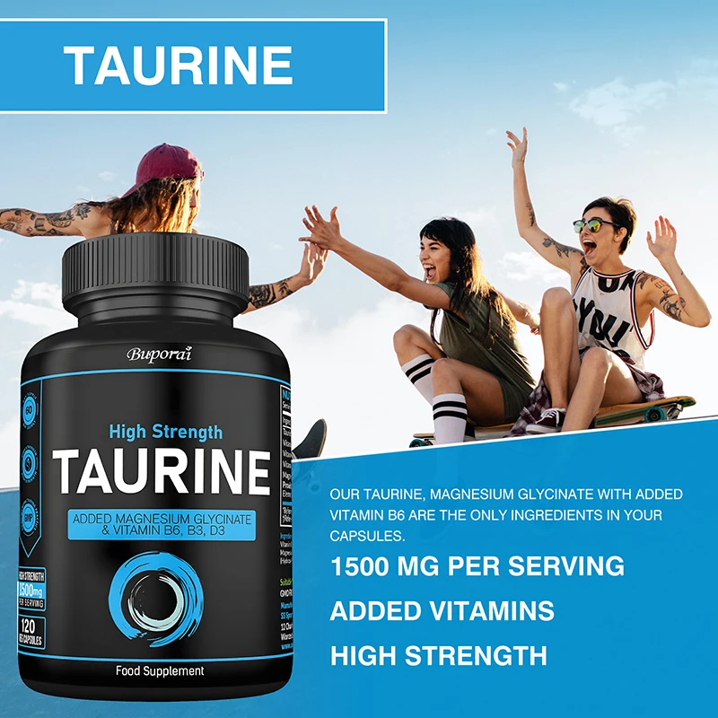 ✅ Taurine Supplement - Each 2 capsules provides 1500 mg of taurine, 100 mg of magnesium glycinate, 1,000 IU of vitamin D3, and 100% NRV of daily vitamins B6 and B3.