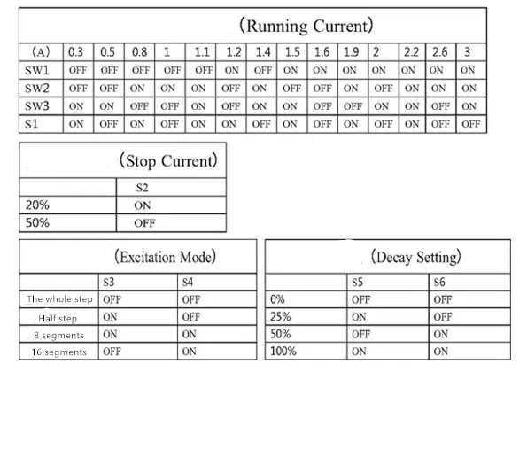 5) Suitable for two-phase / four-phase / four-wire / six-wire stepper motors within 42, 57 steps and 3A, not suitable for step motors over