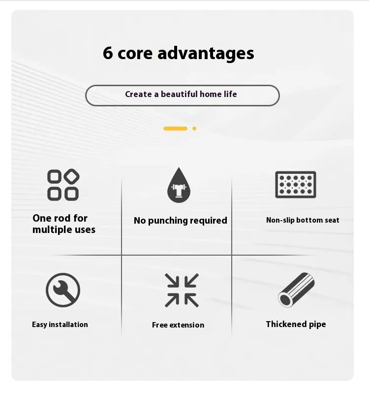 No-Mess Installation: With no need for drilling or complicated installation, the telescopic rod is a hassle-free way to