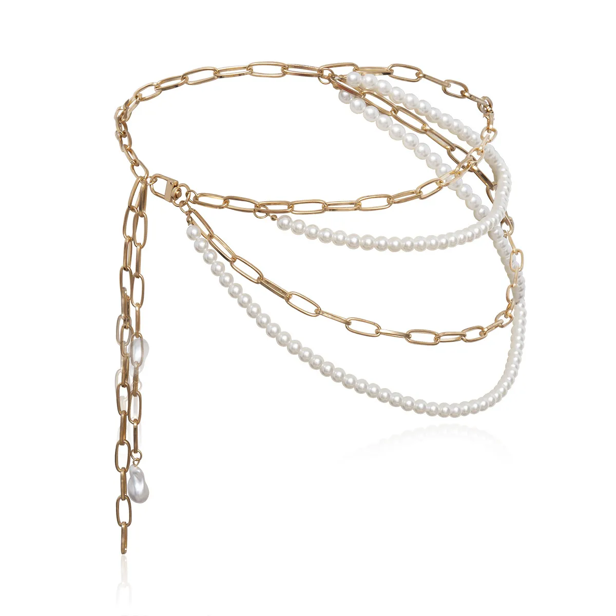 Temperament Multilayer Pearl Chain Tassel Waist Chain Woman