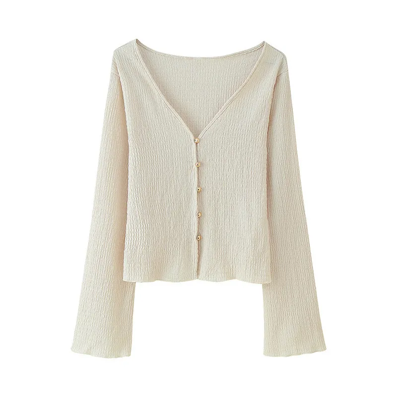 Embrace modern elegance with the Texture Sense V-neck Long Sleeve Top and Baggy Straight Trousers Suit, a perfect ensemble combining style and comfort. The soft-textured fabric delivers a pleasant tactile feel, while the V-neck top offers a flattering neckline that suits various occasions.