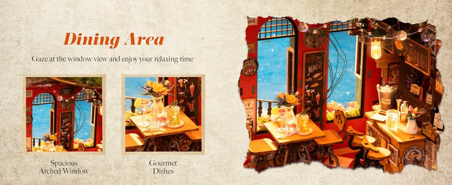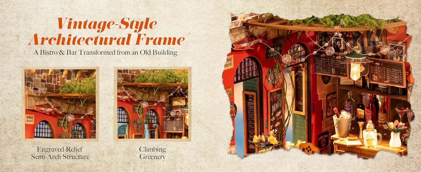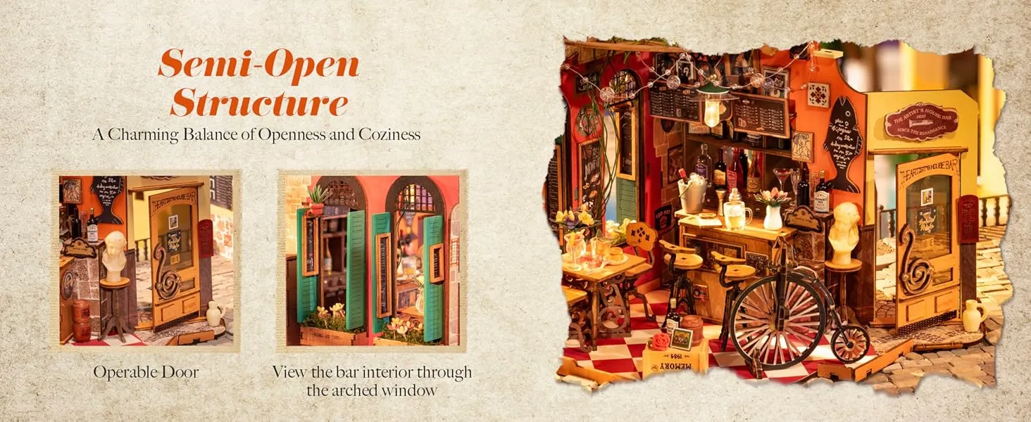 • Nostalgia in Every Detail: Embossed stone textures, stained-glass acrylic windows, and wrought-iron lattices