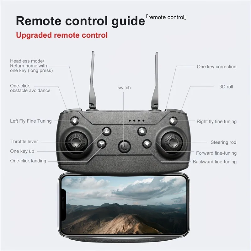 The E99 Dual-camera Drone With Two Batteries Has The Function Of Altitude Hold Mode. Thanks To The Dual Lenses, It Is Able To Fly Stably.