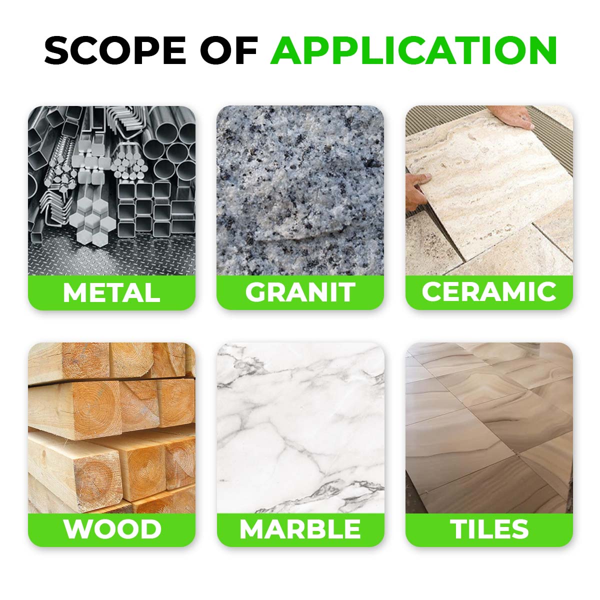 The cutting speed is high and the cut is flat. Whether you are cutting metal, wood, granite, stone, tile or glass, there is much less dust and sparks. No chipping or nasty smell, you cut everything in half the time.