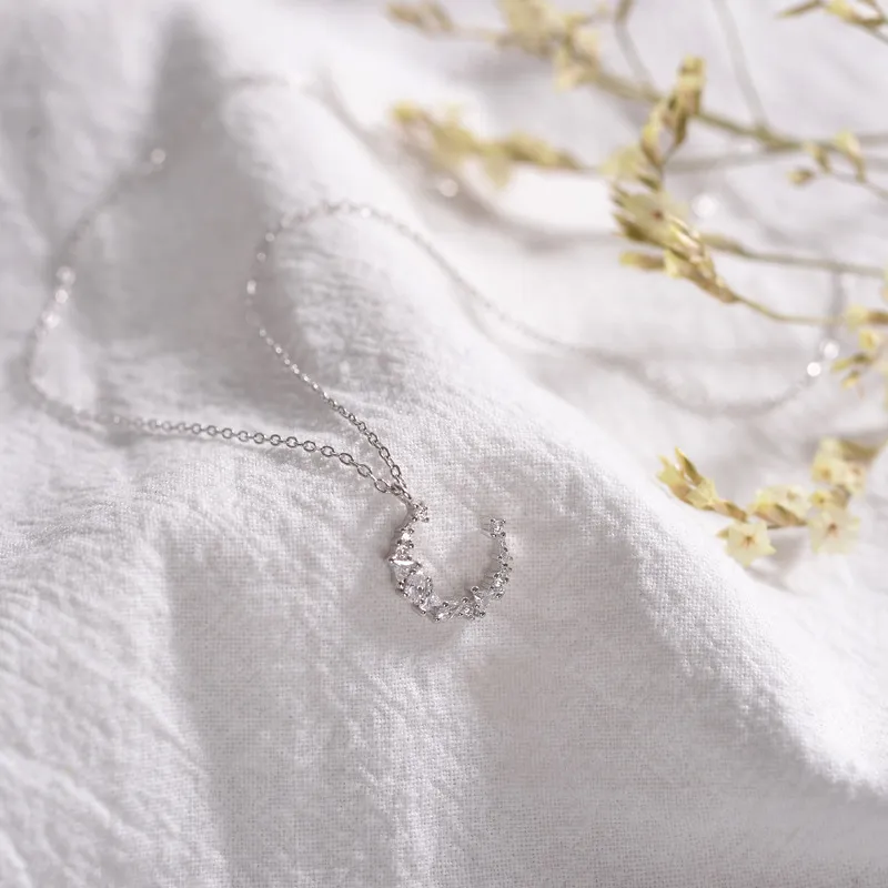 The irregular diamond necklace S925 Silver Crescent chain all-match female temperament clavicle simple Korea accessories