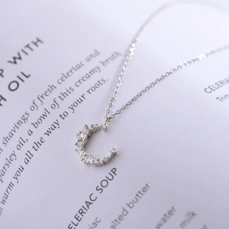 The irregular diamond necklace S925 Silver Crescent chain all-match female temperament clavicle simple Korea accessories